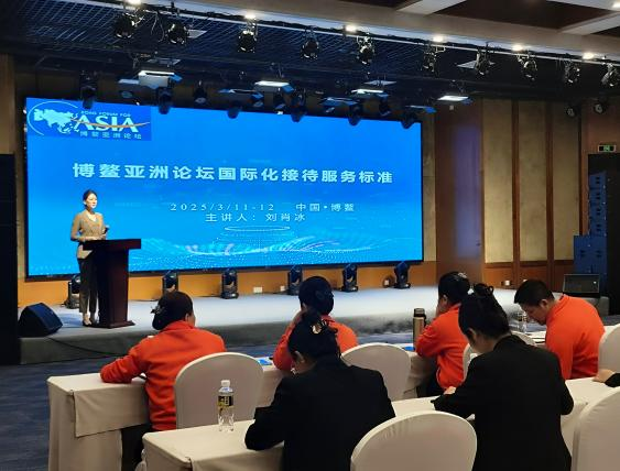 博鳌亚洲论坛2025年年会即将于2025年3月25日至28日在海南博鳌举行,近日我校市场营销(奢侈品运营与管理)专业刘肖冰教授作为海南省饭店业协会特邀专家,为来自14家接待酒店的400余名服务骨干提供了专业服务礼仪培训,助力打造“国际会客厅”的卓越服务标杆。这一合作不仅彰显了我校教师在高端服务领域的深厚积淀,更成为我校产教融合、服务社会的重要缩影。