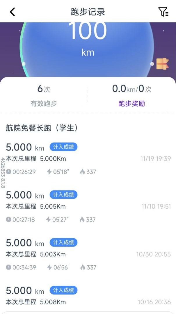 从最初把跑步打卡当作一项任务,到如今把每周运动变成刻进生活的习惯。而且通过跑步还能换取每周食堂免餐积分,给了我更多坚持的动力。还记得刚开始打卡时,总被赖床的惰性打败,也会因偶尔的疲惫想放弃,但看着打卡记录一天天延续,看着自己从跑几百米就气喘吁吁,到能轻松完成既定里程,身体的变化和内心的成就感,慢慢盖过了所有懈怠。